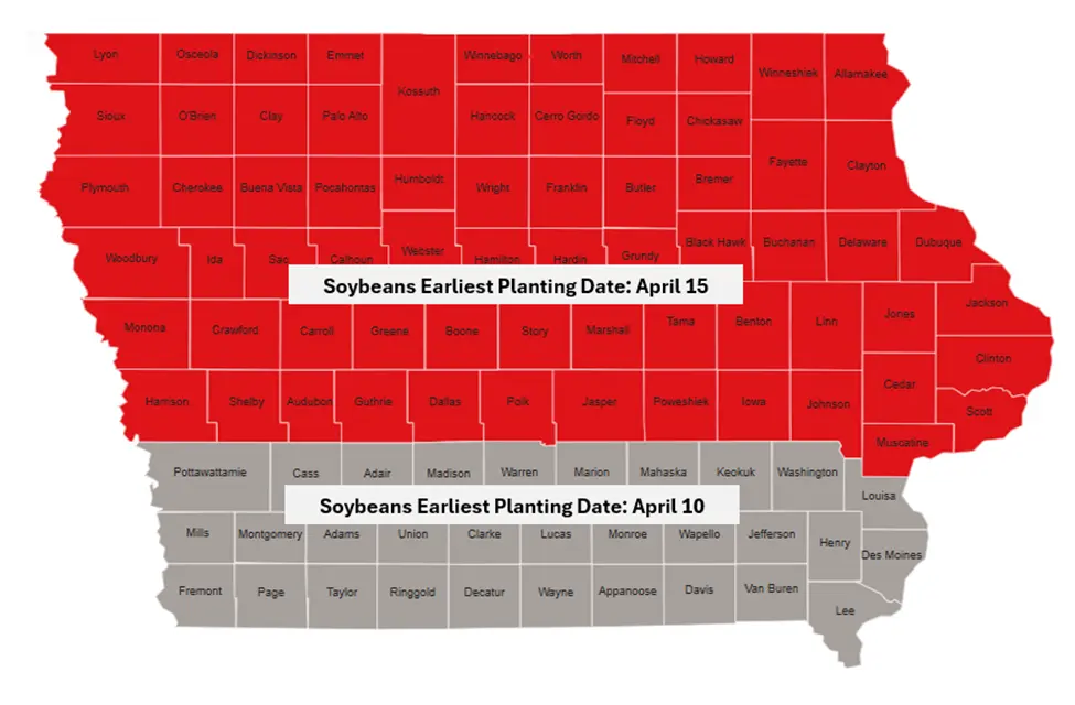 Figure 1: Iowa Soybean Earliest Planting Dates 2026