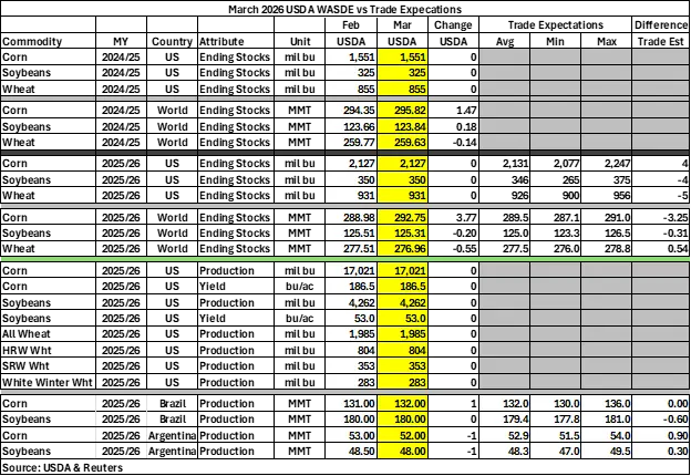 The USDA released its updated WASDE report on March 10th, 2026.